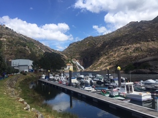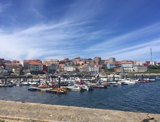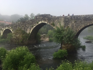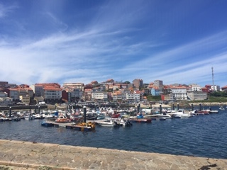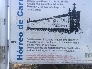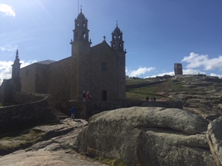 On Sunday we took a day trip to Finisterre and Costa da Morte. Had we another few days we might have walked there, but Barelona and home await. Finisterre is the last place on the Way, whichever route you took. It is the only route that starts in Santiago so it's an add on. On the way we went to an ancient bridge, Pontemaceira, Muxia on the Coast of Death (shipwrecks), Finisterre village, and the lighthouse. On the way home we stopped at Ezaro's waterfall and at the large granary (Horreo) at Carnota.