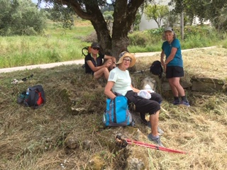 Tomar to Cortica is a walk of 25ks through eucalyptus and cork forests, olive groves, and scrubland. A couple of very steep climbs interspersed with undulating hills. Oranges left out for pilgrims. There was never any worries about getting lost as there is usually someone to point out the way. Along the way we met the three wise men! Three very exuberant gentlemen from different countries journeying together. We met up with them and Peter and Sue again when we reached Cortica that evening. The people you meet along the way is what makes the Camino so special.