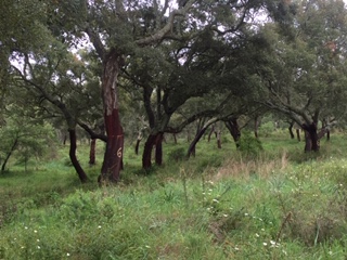 Photos. Cork forest. Portugal is a major producer of cork. One of the many village churches we passed on the way to Cortica. Picnic lunch. Our very nice accommodation in Cortica, except for there being no door to the bathroom.